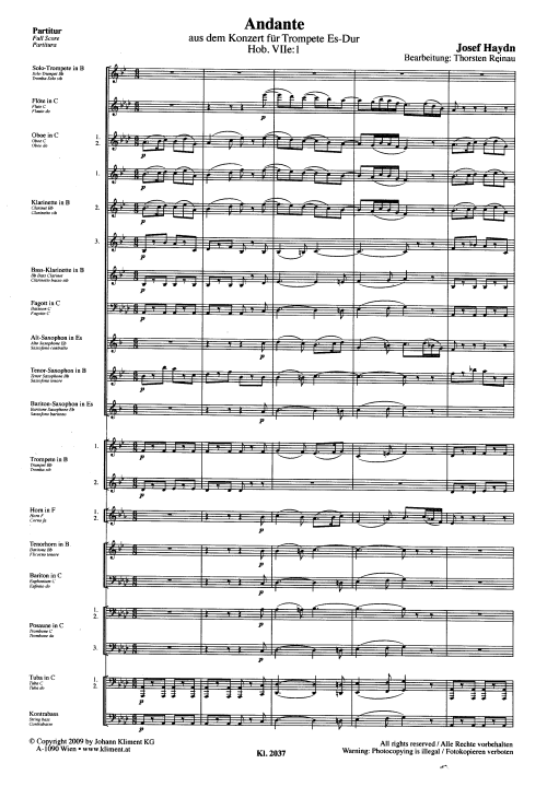 Andante aus dem Konzert für Trompete in Es-Dur - hier klicken Andante aus dem Konzert für Trompete in Es-Dur (Blasorchester; Trompete in Bb), Partitur